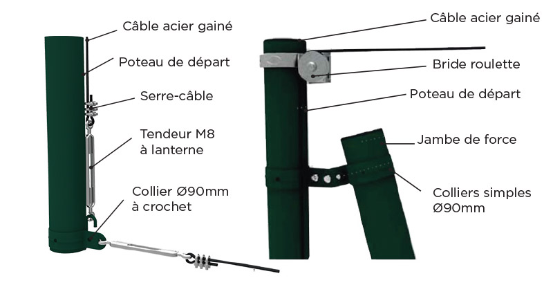 Raidisseur n°4 finition galvanisée et plastifié vert.